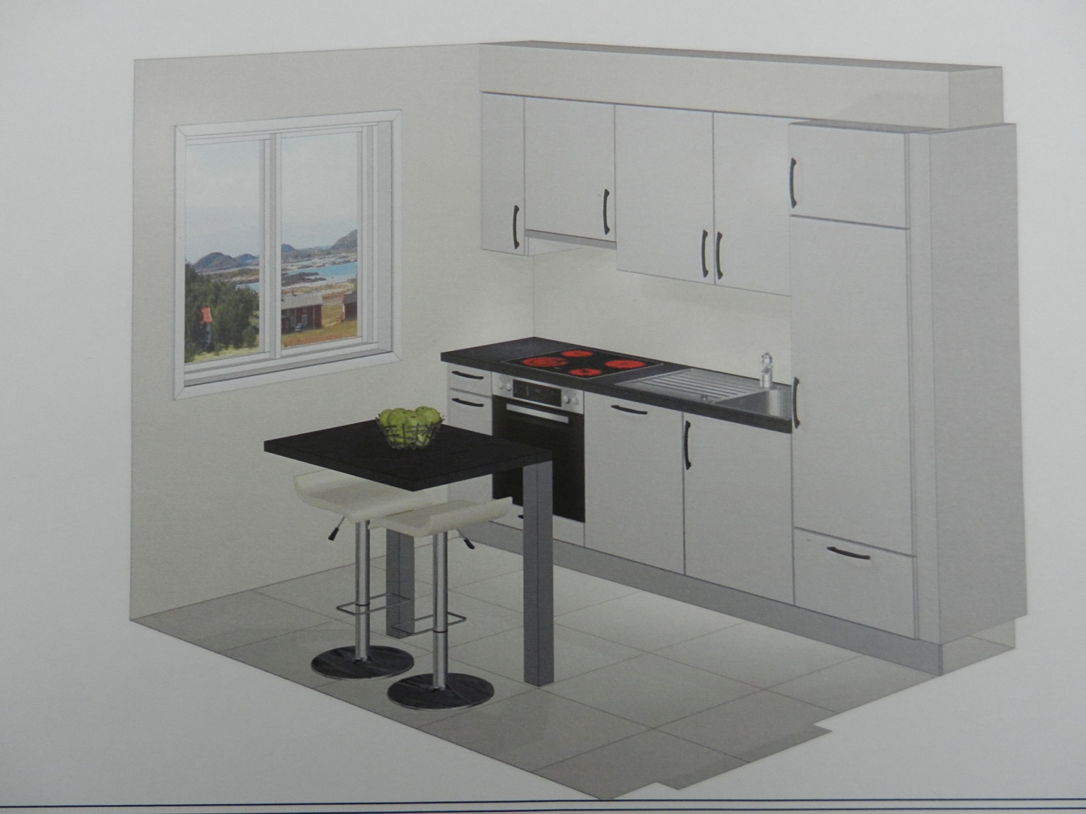 Rez, 3 pièces avec cuisine agencée habitable.