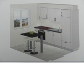 Les Breuleux, 3 pièces, cuisine agencée habitable, salle de bains-wc, séjour, 2 chambres.
